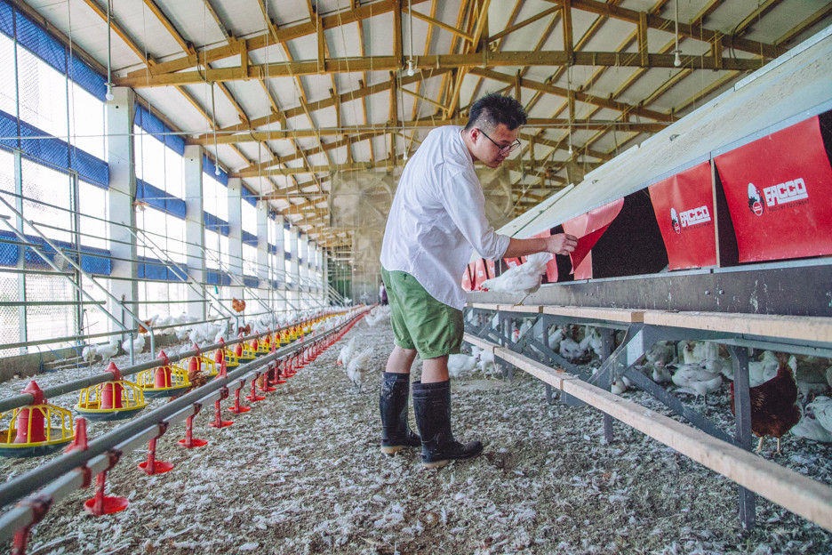 傻蛋點出,籠飼最大狀況是不符合天性,無法讓雞隻自在生活,全部關在一起,容易生病,花約2年時間打造出座放牧場,養2萬隻雞,管理、空間上投入不少功夫「善待母雞」,每場有3位保母,能在最舒適環境發揮天性。每天下午2點,放出去到屬於牠們的遊樂場玩耍2、3小時,會像倉鼠滾砂浴,把翅膀展開,讓翅膀碰到沙土,把蟲排掉,吃地上的草,如神農氏有自癒能力,吃出天然免疫力。有趣的是,小時候常以為雞很怕人,開始親自飼養這些母雞,發現牠們其實很可愛、親人,尤其紅羽土雞,更愛跟前跟後黏著。