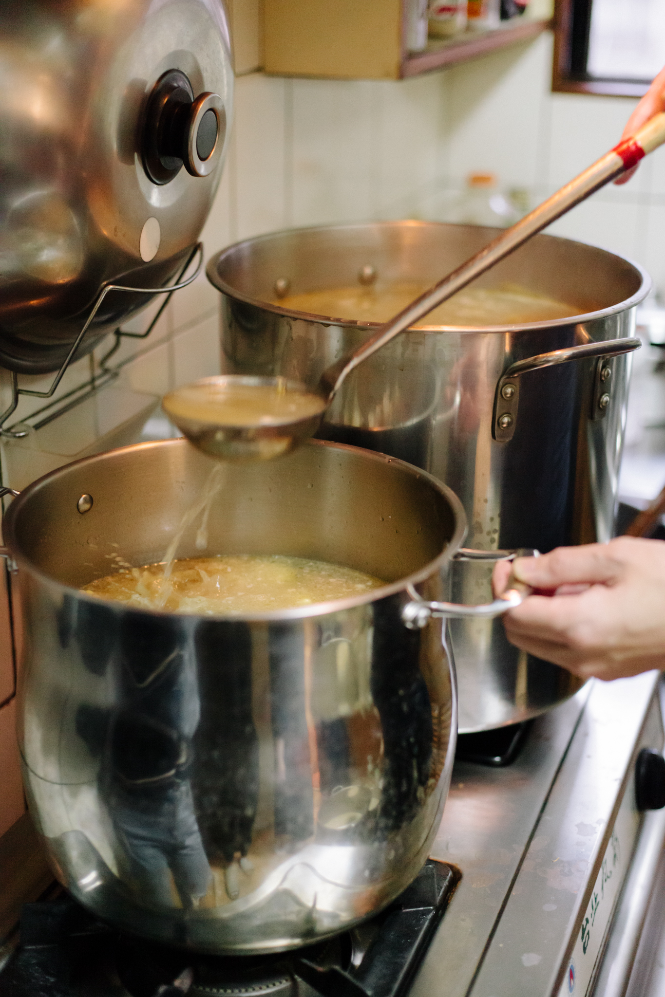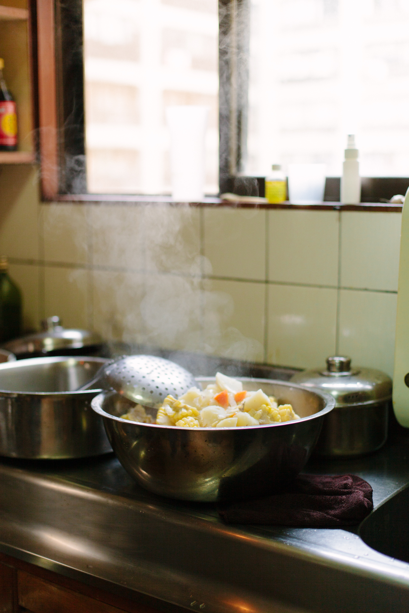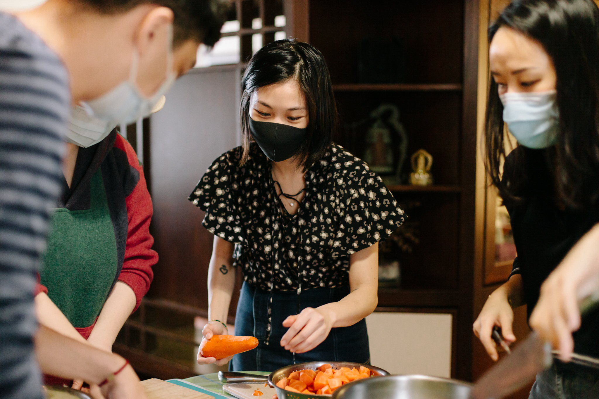 傍晚前要一起完成台式鹹粥、滷蛋和一鍋蔬菜排骨湯,眼看時間迫在眉睫,兩位廚師朋友趕緊條列SOP,指揮初上戰場的菜鳥們,那個誰負責打蛋(而且是好吃的傻蛋放牧蛋),那個誰負責洗米(還是契作的友善小島米),細細調味鍋裡高湯之餘,也得隨時張望是否有人迷糊剁到手。