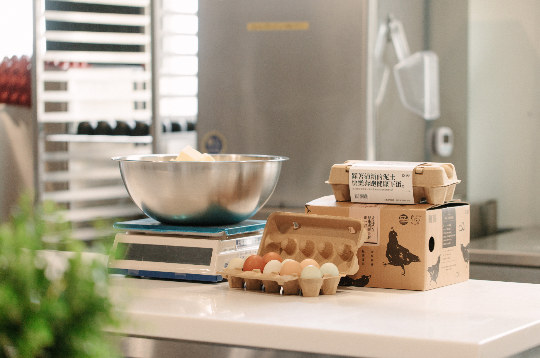 伍鴻昌提到,「在歐洲,他們販售的雞蛋是有分等級,從等級0到等級4,等級0的是非籠子飼養所產出的雞蛋,價格上是所有等級蛋品最高的,卻也是最多人買的。」從品牌開始選擇正確的事:「健康食物的安全溯源,以及友善環境」,並把事情做正確。因此, kafeD 在食材上也盡所能及選擇動物/環境友善的來源、達到近零碳排放的目標。這樣的堅持與傻蛋的理念不謀而合,採取友善放牧的形式,讓每一隻母雞都能在自由的環境中快樂的下蛋,是對生命的尊重,更是對於食材的講究。