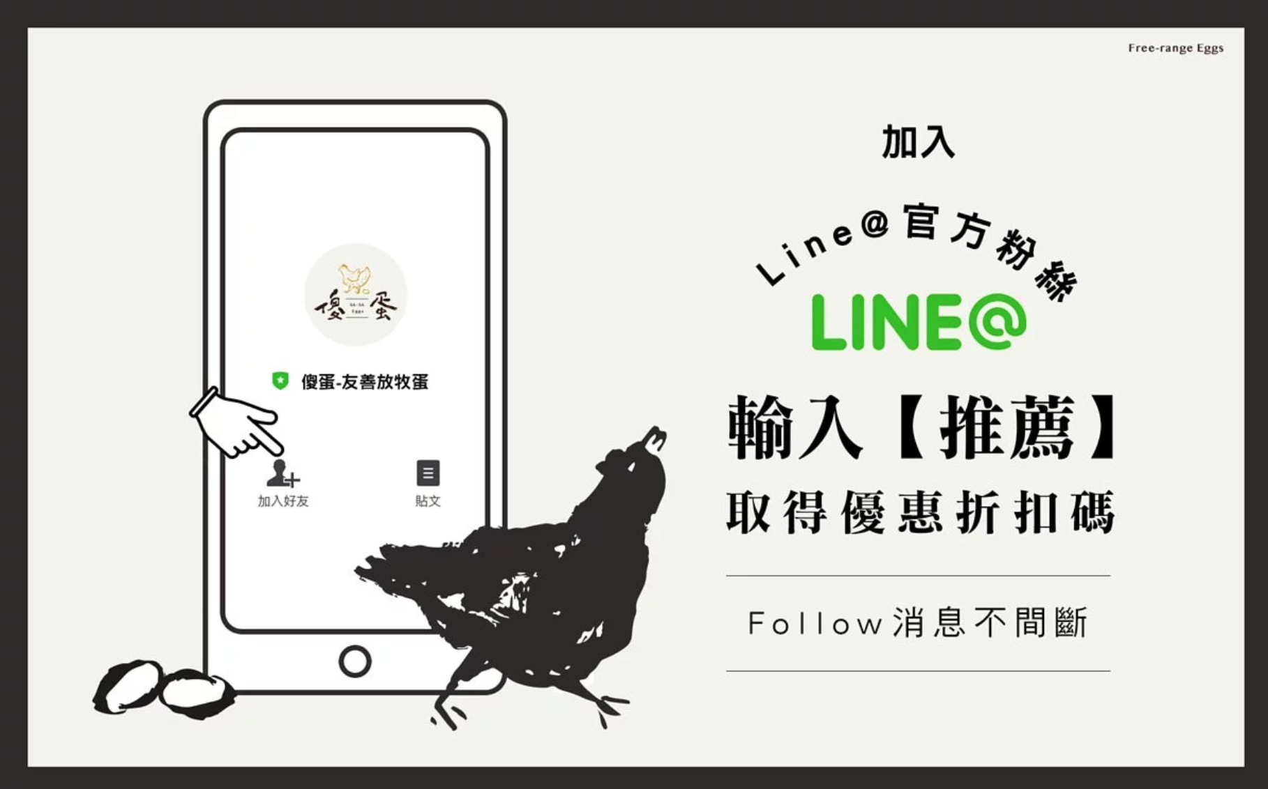 傻蛋也有Line官方帳號囉!趕快加入『@sasaegg』或點擊http://line.me/ti/p/@sasaegg,即可成功變成好友,再輸入訊息「推薦」,就可看見秘密序號,獲得折扣優惠噢。