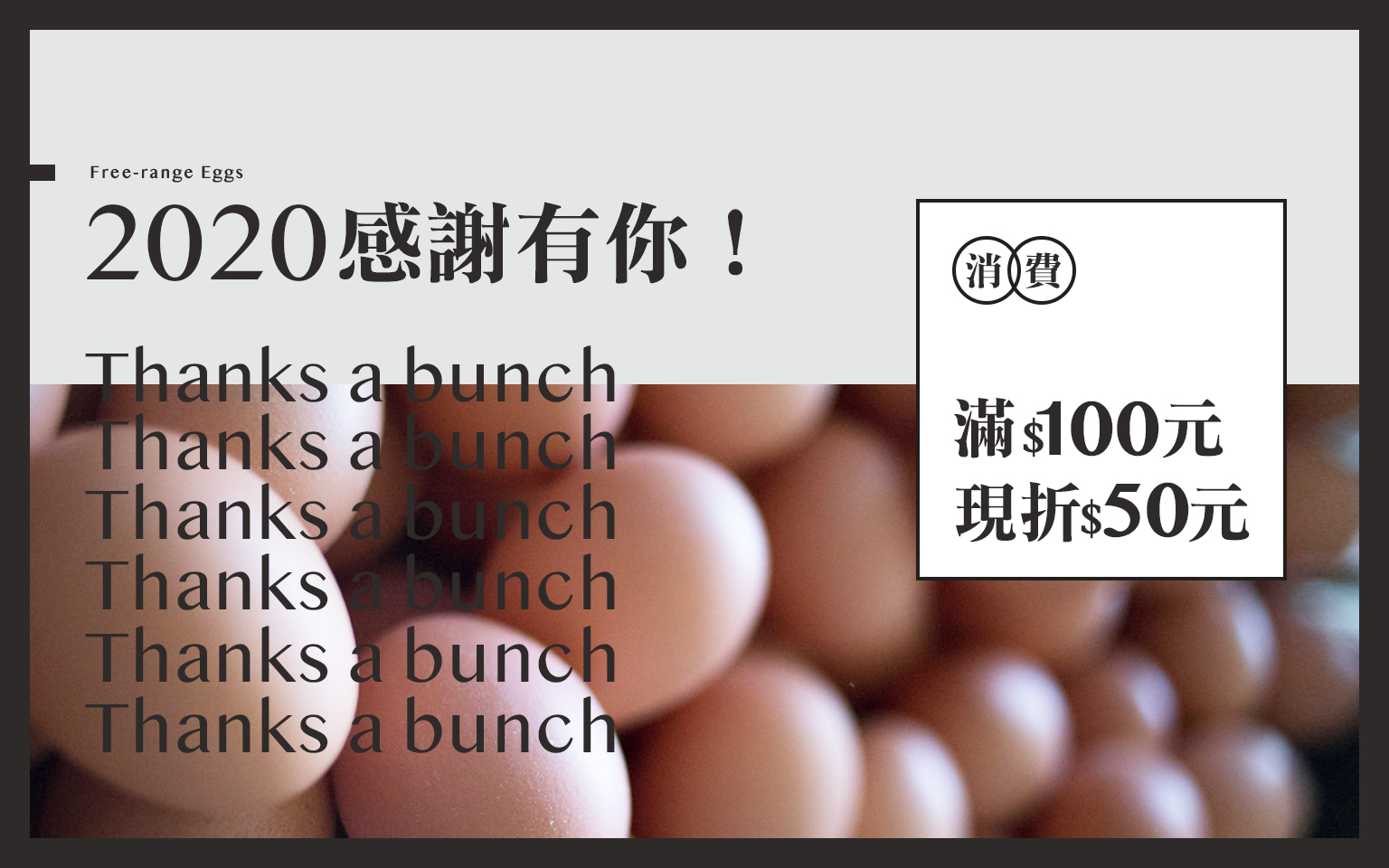 HELLO 2021!新的一年也要一起站在母雞這一方❤️ 即日起至1/31官網消費達$100,立折$50元!小小回饋表達傻蛋的心意,新的一年歡迎一起「用蛋放電」(哈)