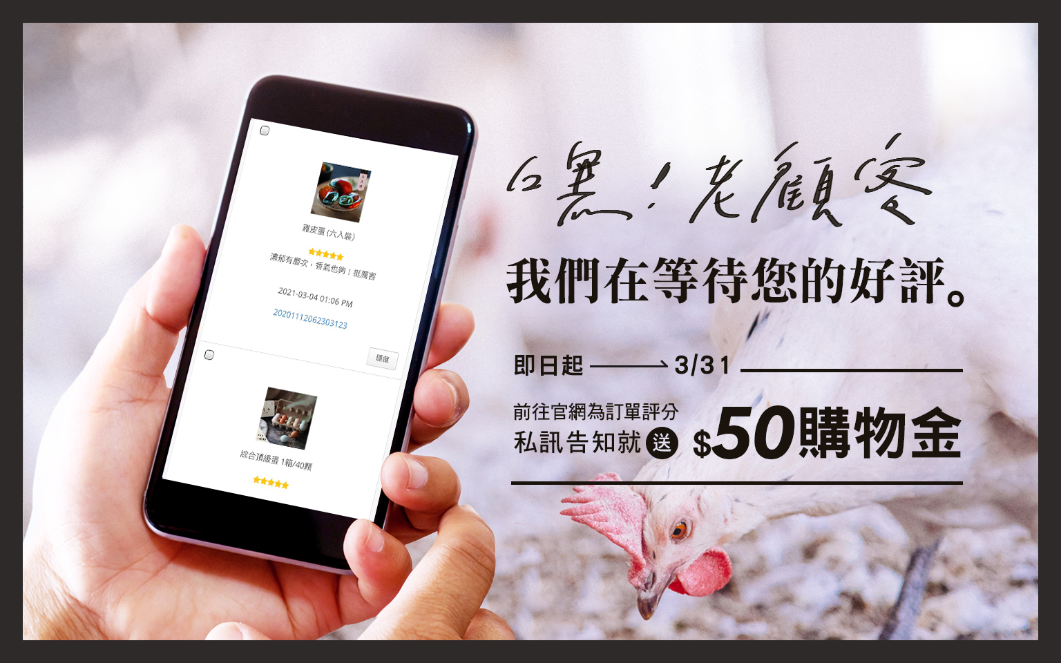 為過去訂單評分!每筆訂單送$50購物金❤️