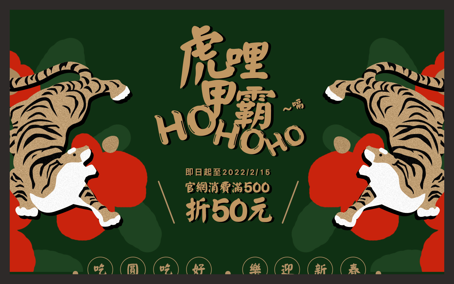 虎年就是要像虎爺一樣愛吃蛋!即日起2/15官網消費達$500,現折$50元!虎哩甲霸甲好,元氣迎春,新的開始我們都要過得更好HOHOHO!